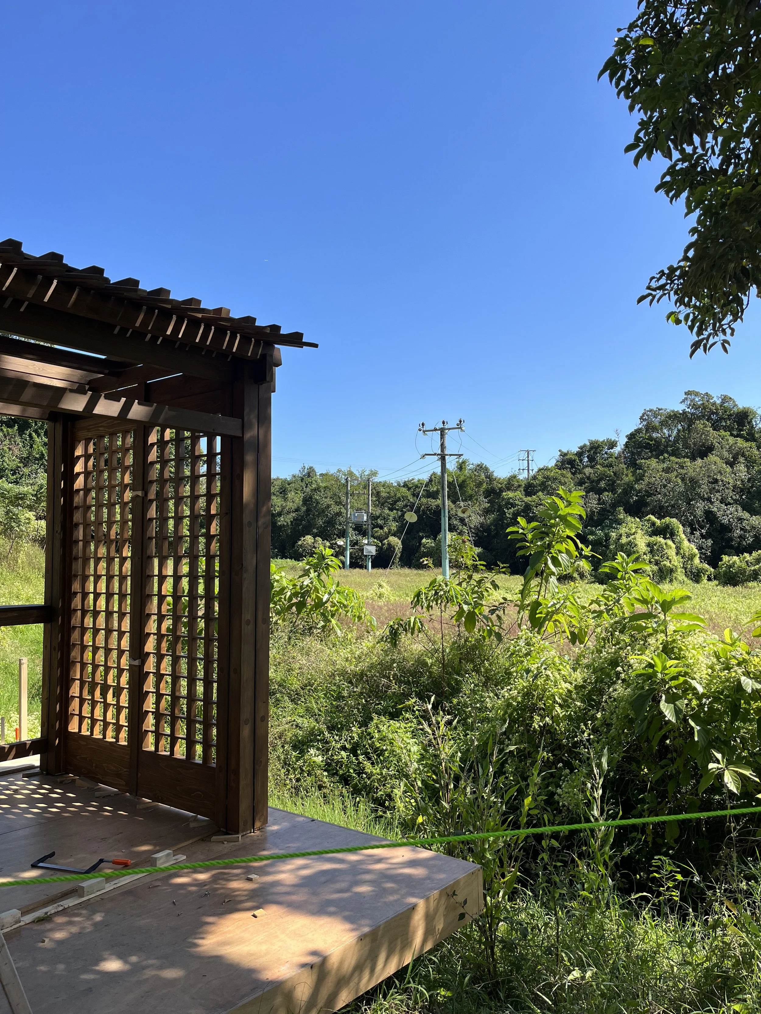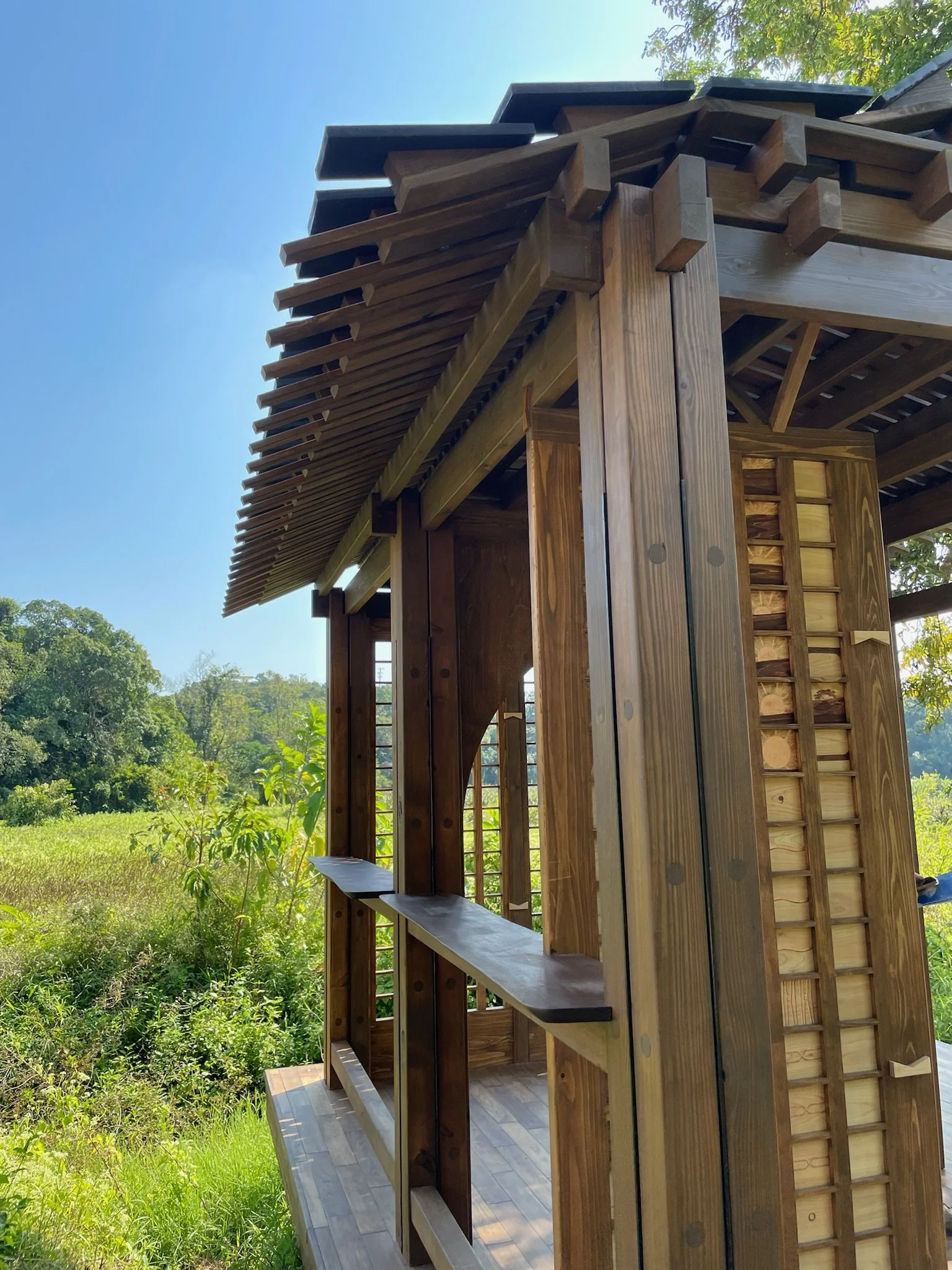 In the artwork, a wooden pavilion is constructed in front of the salt field, aiming to create a space for ‘reading’ the landscape. The wooden tiles on the pavilion’s roof are made from the fallen Chinese Hackberry that was originally located in Yim Tin Tsai, and the wood grain bears witness to the history of this place. The bottom of the pavilion extends into a platform, interacting with the nearby trees and sunlight, allowing visitors to experience the present moment in this natural shaded area. The pavilion provides a space for visitors to rest and to read stories. The artwork records the stories of the island residents and the landscape of saltpan, landscape, while also encouraging visitors to freely create their own stories about the landscape as they gaze outward from the pavilion. This allows viewers to have their own interpretations while reading the stories of the island residents.