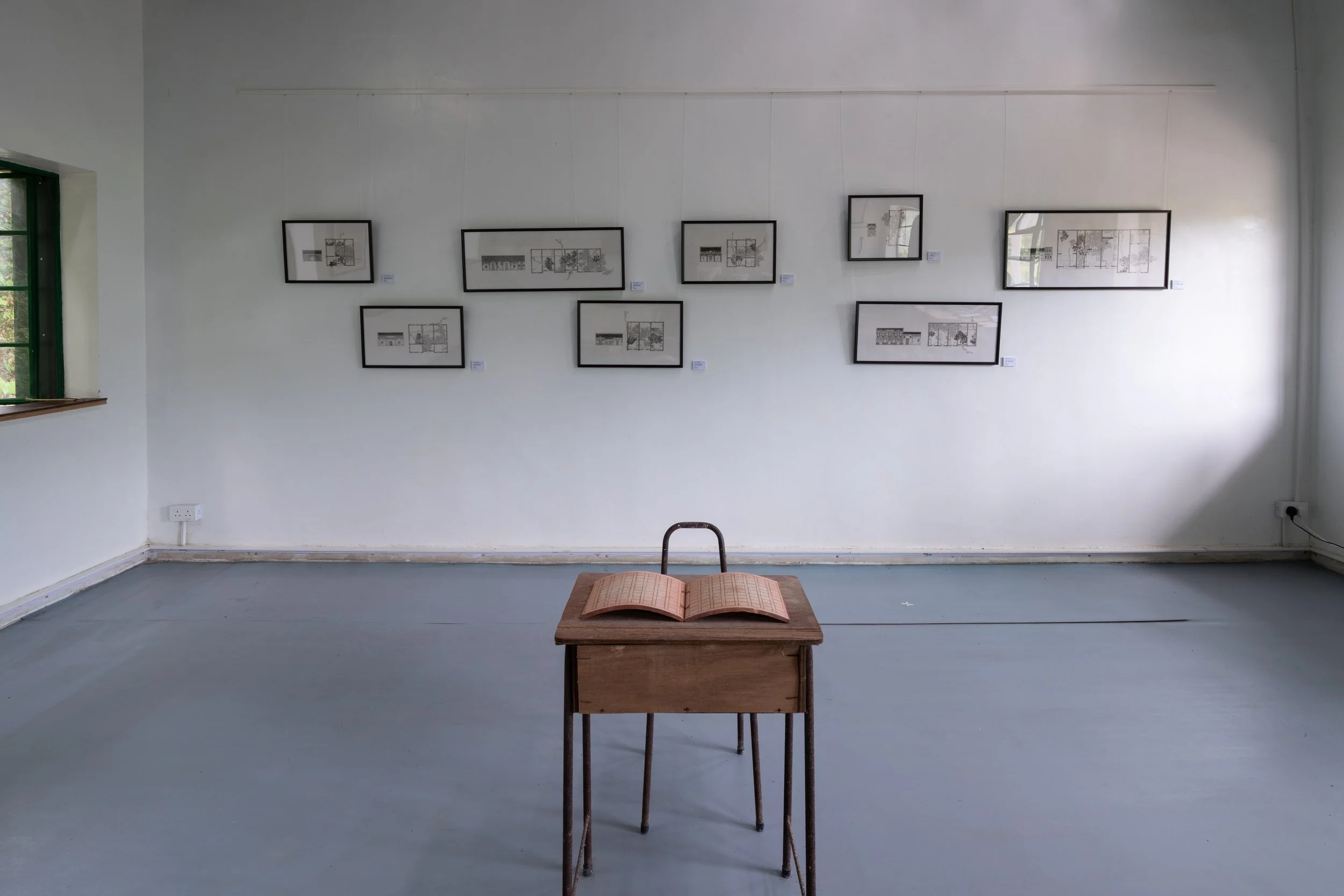 The exhibition is divided into three parts: the first part focuses on the waterway (from Sha Tau Kok to Kuk Po), deconstructing the landscape and highlighting the significance of piers, the sea, and boats to the local residents from the villagers' point of view. The second part centres on Kuk Po's architecture, depicting the growth of trees around abandoned buildings to emphasise the significance of trees and human beings in supporting the structures. Lastly, the exhibition uses old tiles from Kuk Po's buildings to create a storybook, with original manuscript paper grids, as if unveiling a series of stories under the eaves to present to the audience.